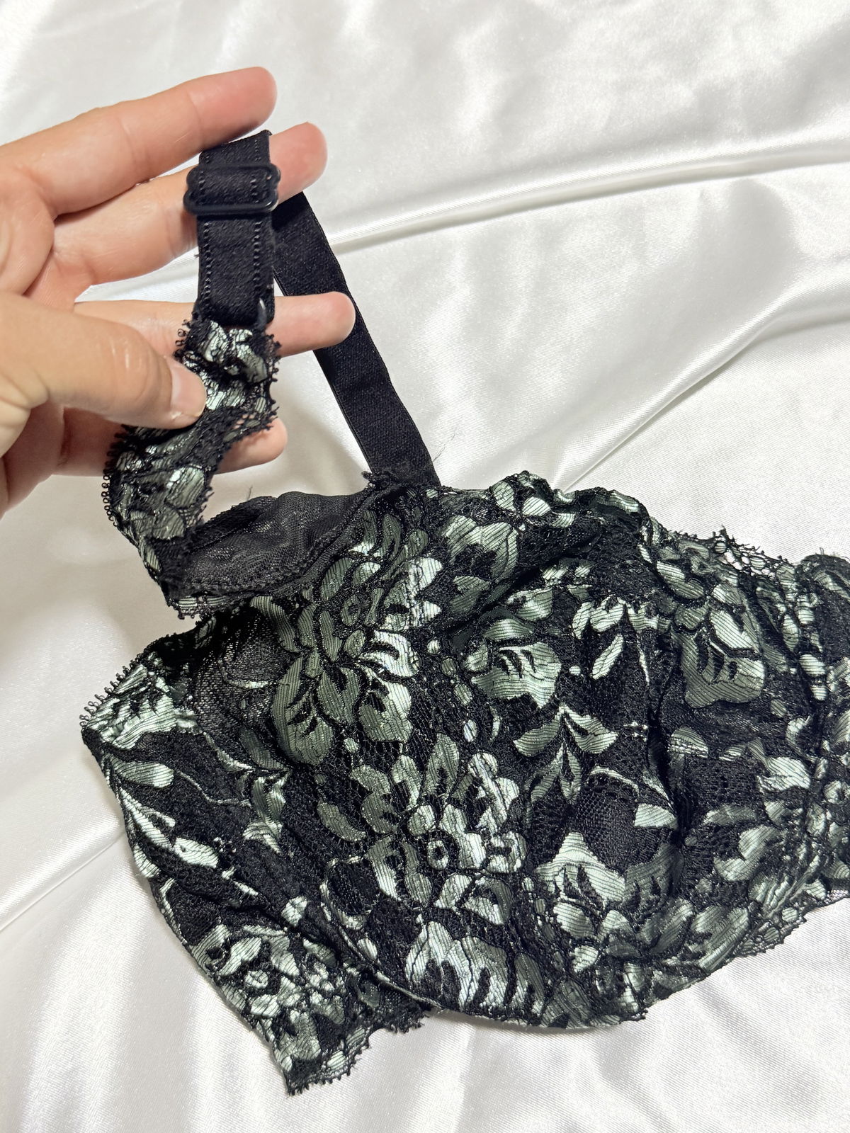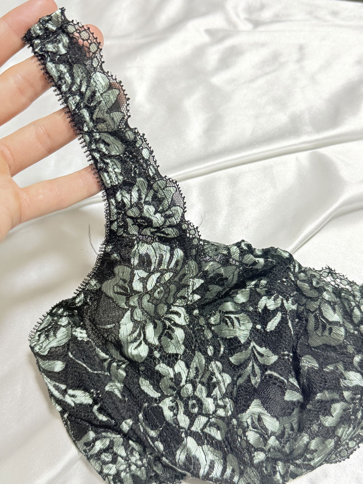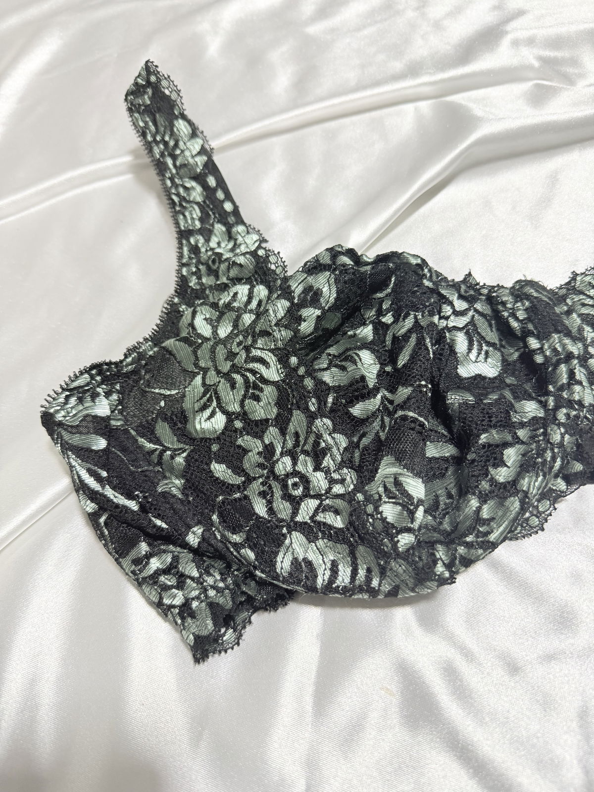 Corpiño de encaje combinado, con arco y breteles reforzados.