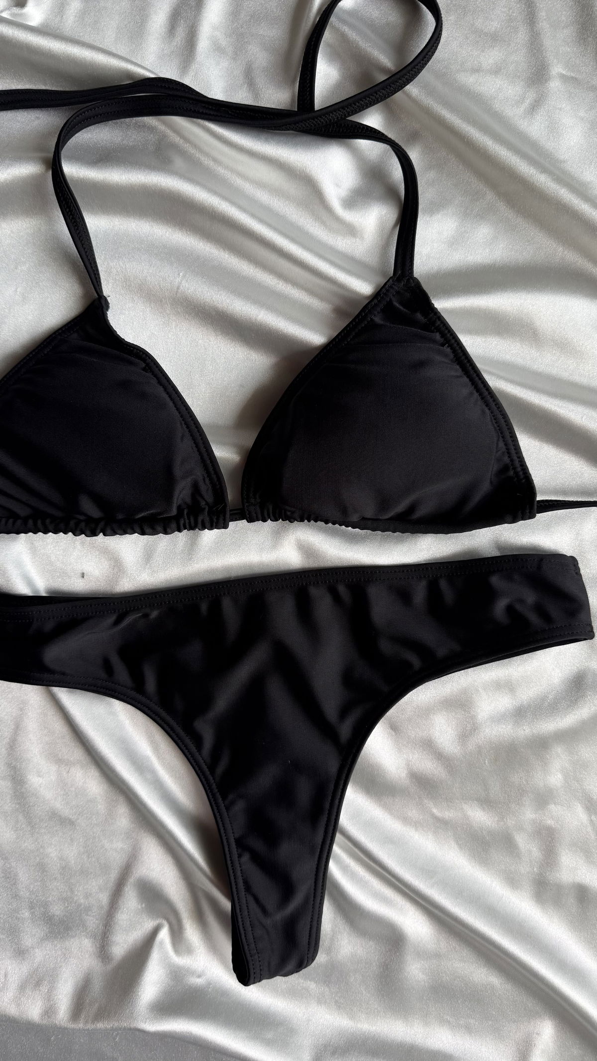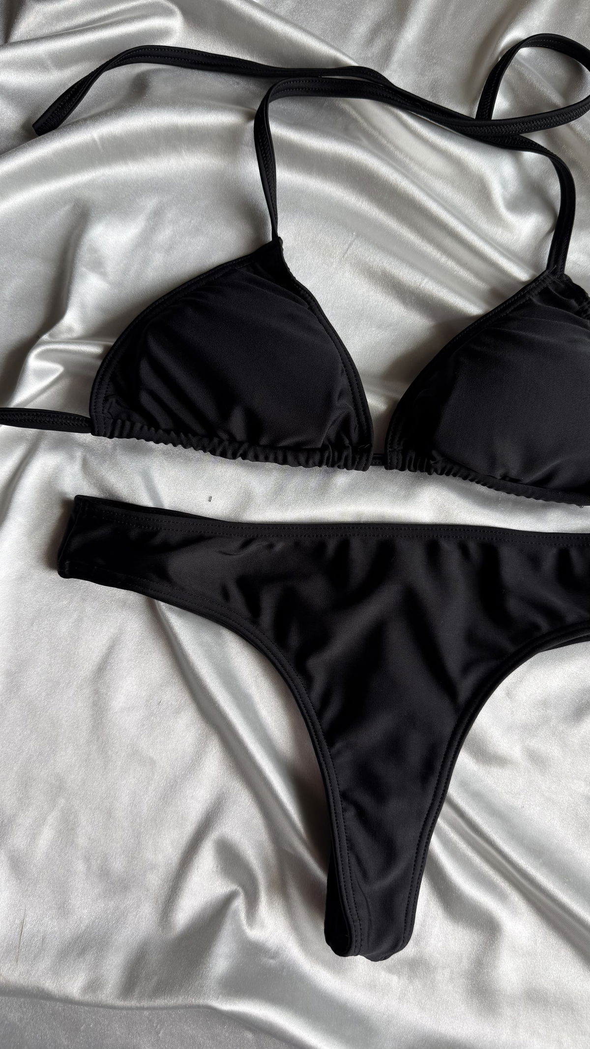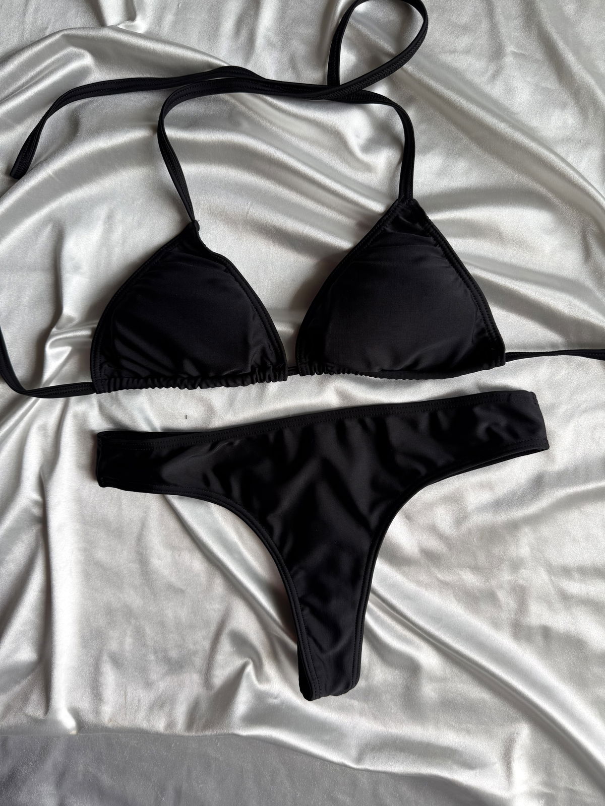 Set bikini triangulito para atar y colaless.. Completamente forrada por dentro. Incluye tasas desmontables