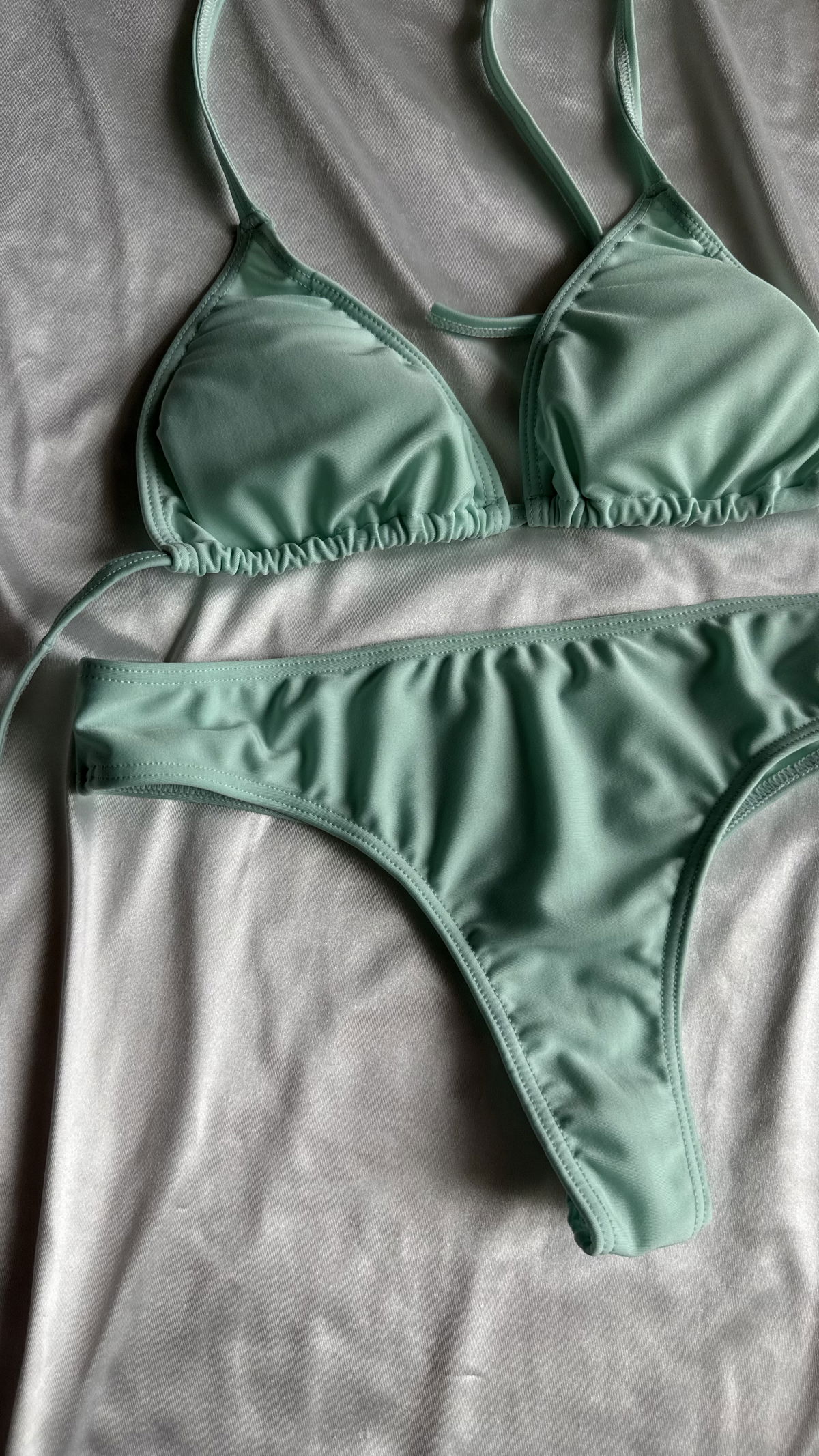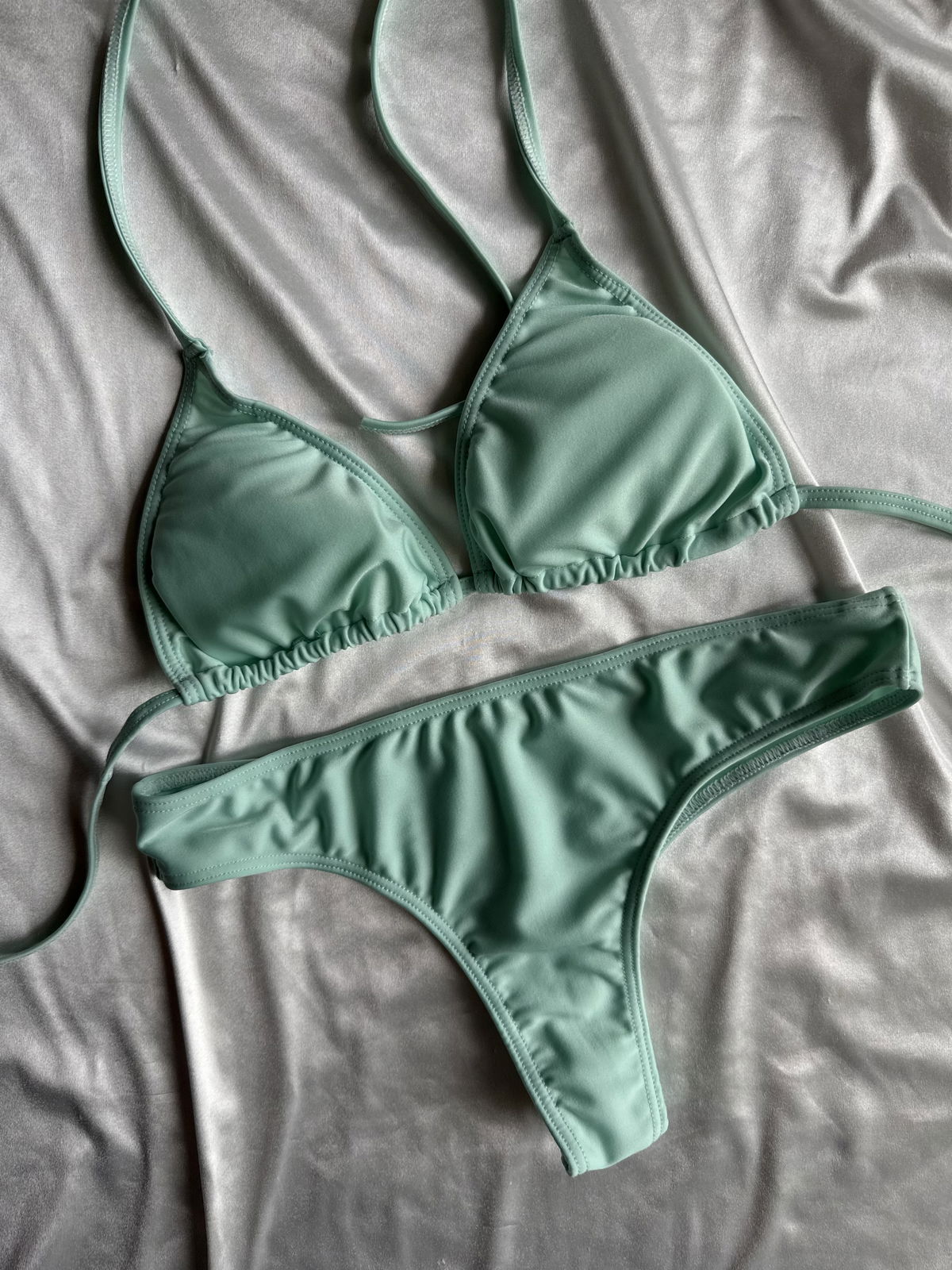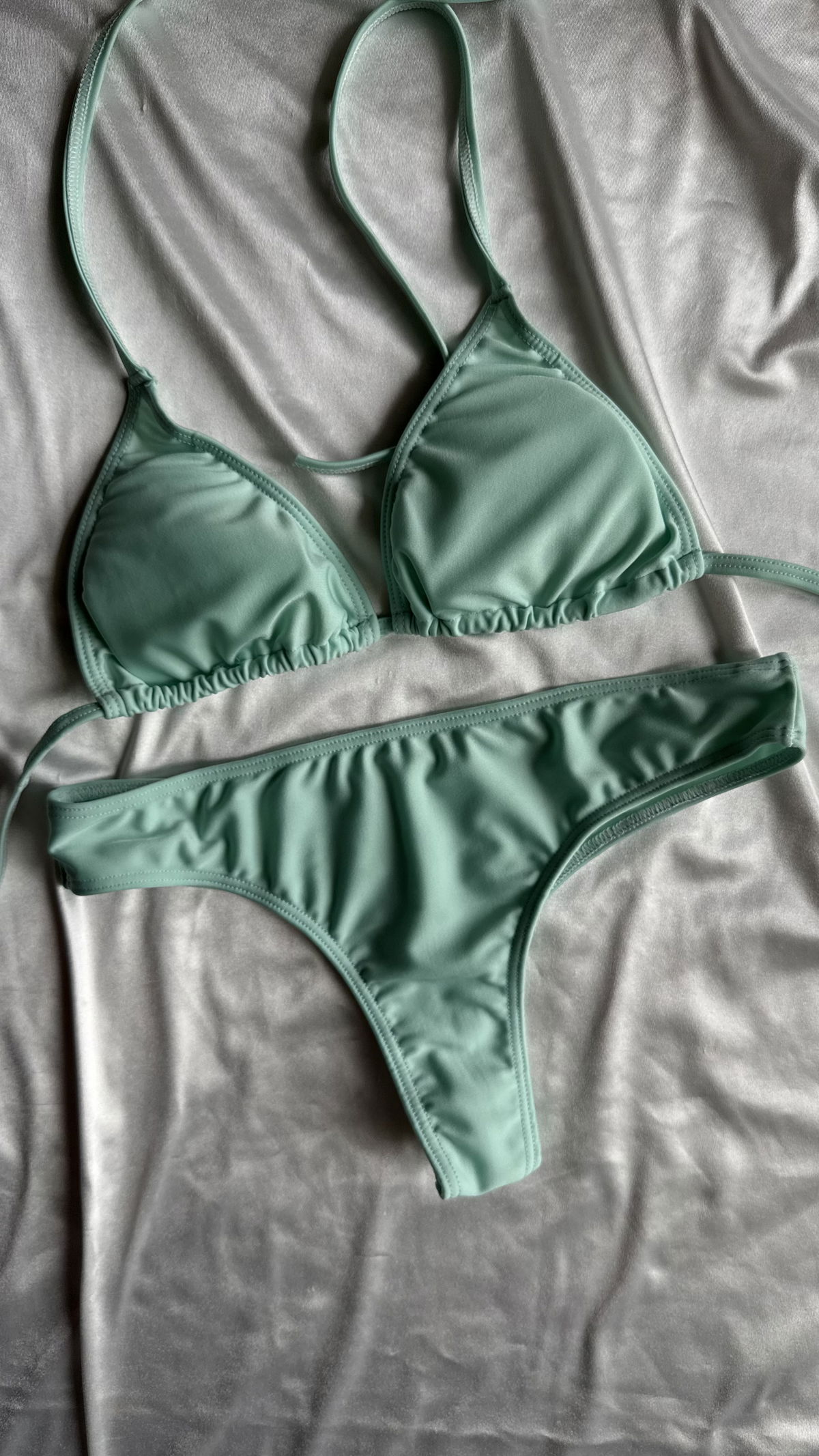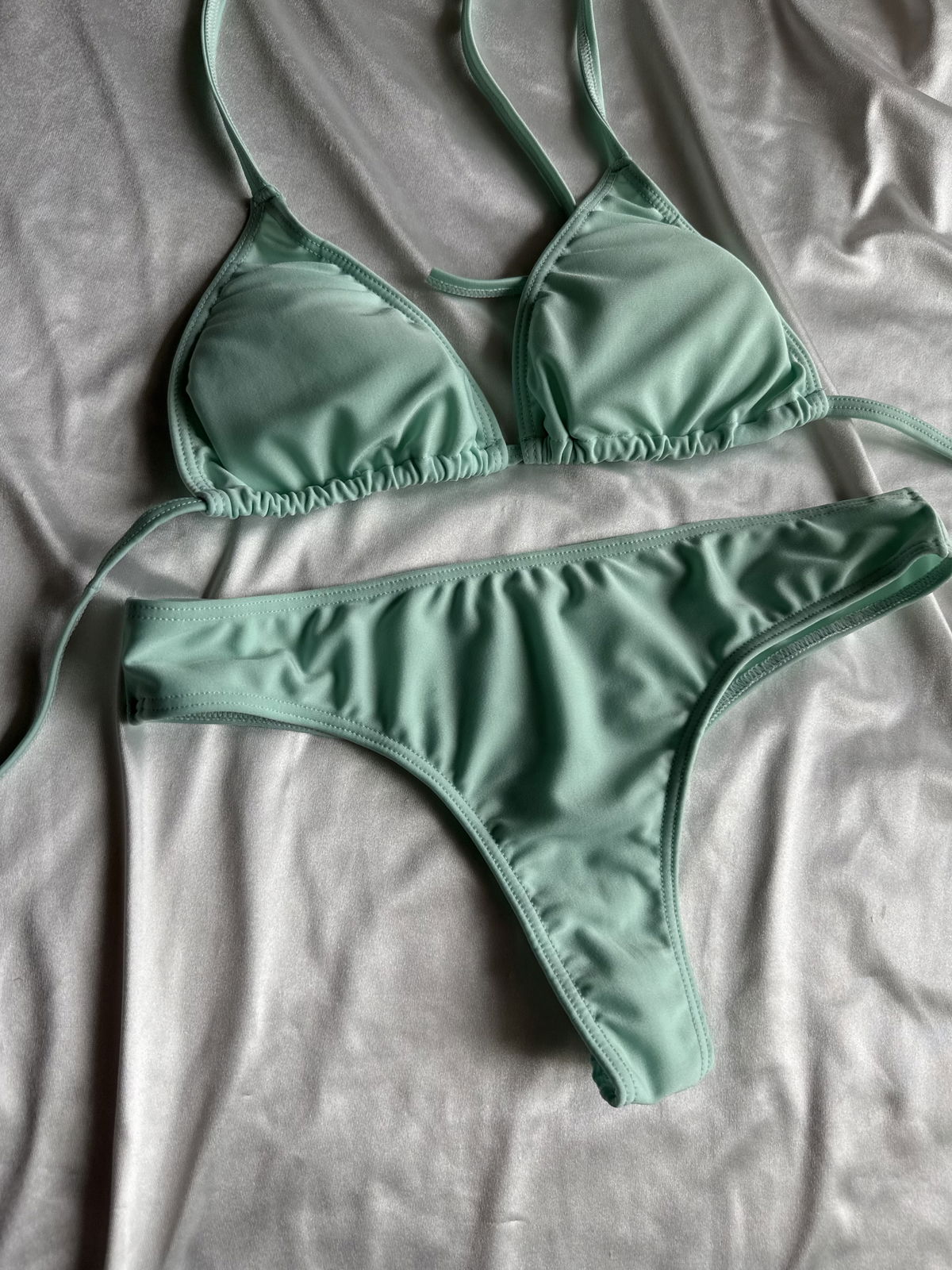 Set bikini triangulito para atar y colaless.. Completamente forrada por dentro. Incluye tasas desmontables