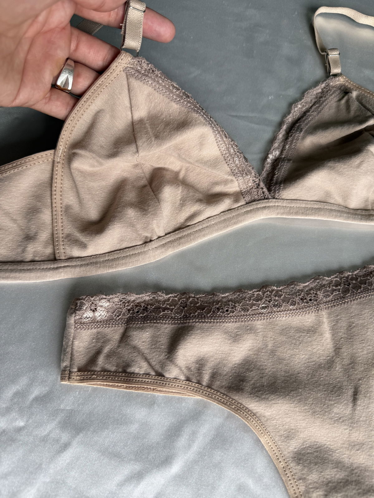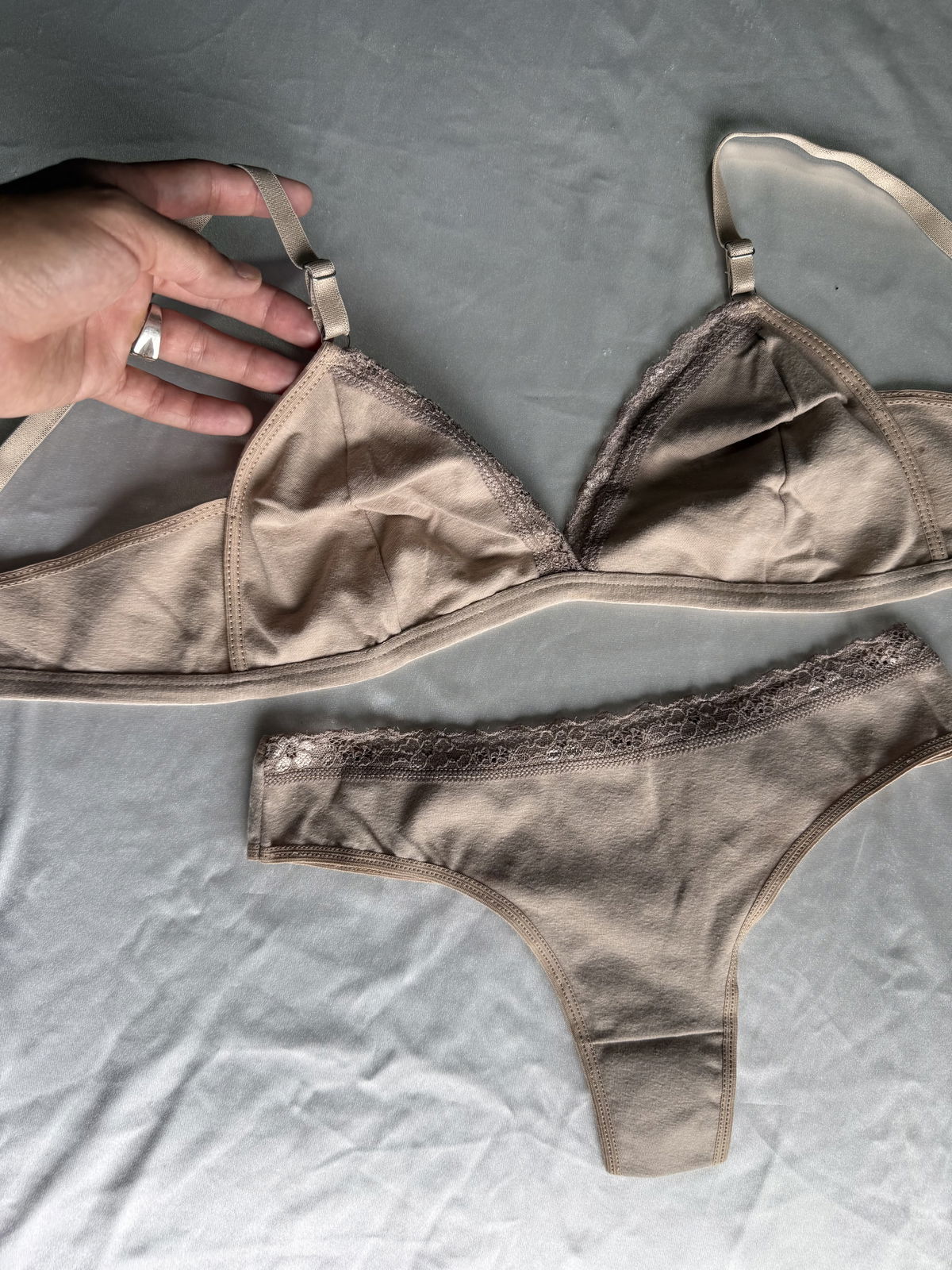 Conjunto triangulito de algodón y encaje.